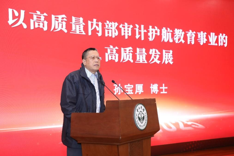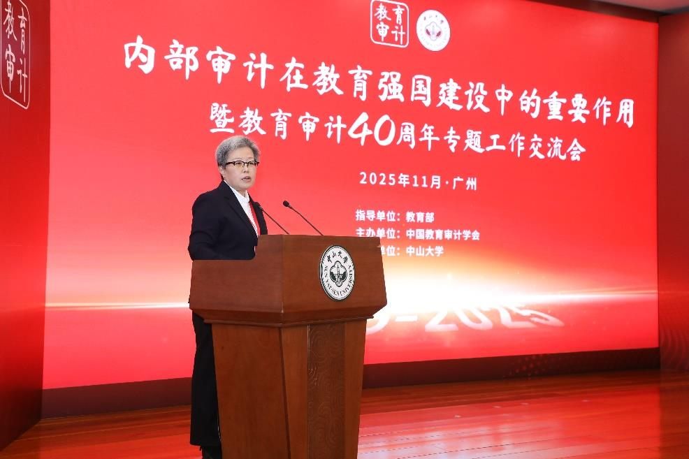 为深入贯彻党的二十届四中全会精神和全国教育大会精神,更好地服务教育、科技、人才一体化发展战略,推进教育审计事业高质量发展,11月26日至27日,由教育部指导,中国教育审计学会主办,中山大学承办的“内部审计在教育强国建设中的重要作用暨教育审计四十周年专题工作交流会”在中山大学召开。中山大学党委副书记、校长、中国科学院院士高松,教育部财务司副司长魏秦歌,北京国家会计学院党委副书记、院长、中国教育审计学会会长叶康涛,以及教育部财务司审计处处长杨姗等出席大会。我校审计处处长章俊应邀参会,与全国140余名来自教育部、工信部所属和各地方的116所高校、6个省级教育行政主管部门的学会理事单位、会员单位代表齐聚一堂,共话教育审计高质量发展路径,共探教育审计服务教育强国建设的实践方向。