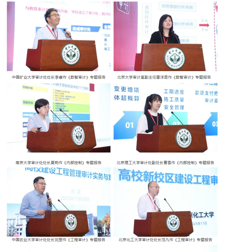 26日下午是专题报告环节,由中国教育审计学会学术部副主任于志刚主持。邀请了来自天津大学、中国矿业大学、北京大学、南京大学、北京理工大学、中国农业大学、北京化工大学、清华大学等单位的8位专家分别就重大政策、数智审计、内部控制、工程审计、科研经费等审计领域作专题分享报告。报告内容既有理论高度,又具实践价值,十分精彩。